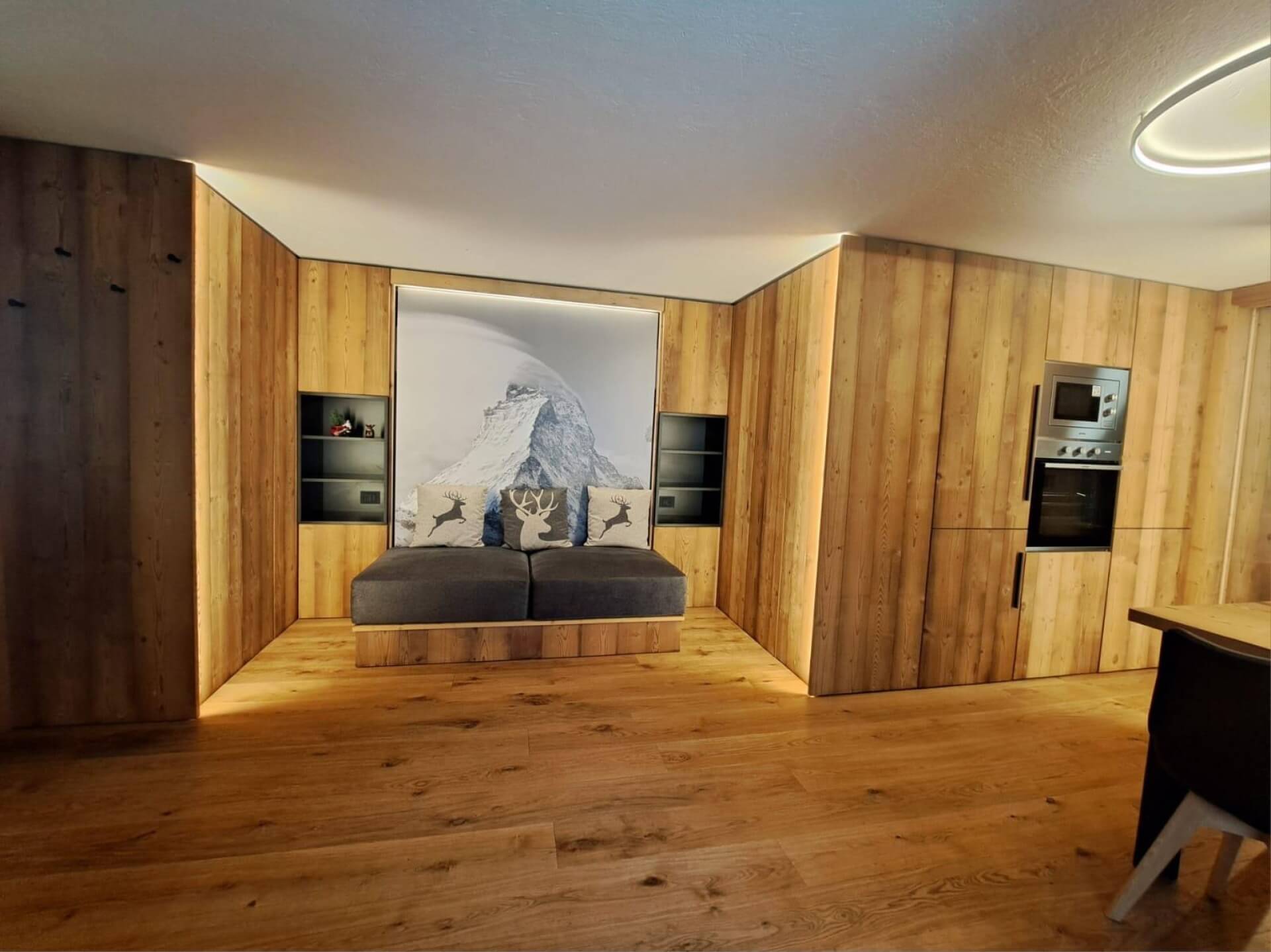 In questa galleria presentiamo alcune delle nostre realizzazioni di design d’interni, dove boiserie, arredi e pavimenti in legno dialogano tra loro per creare ambienti armoniosi e accoglienti.