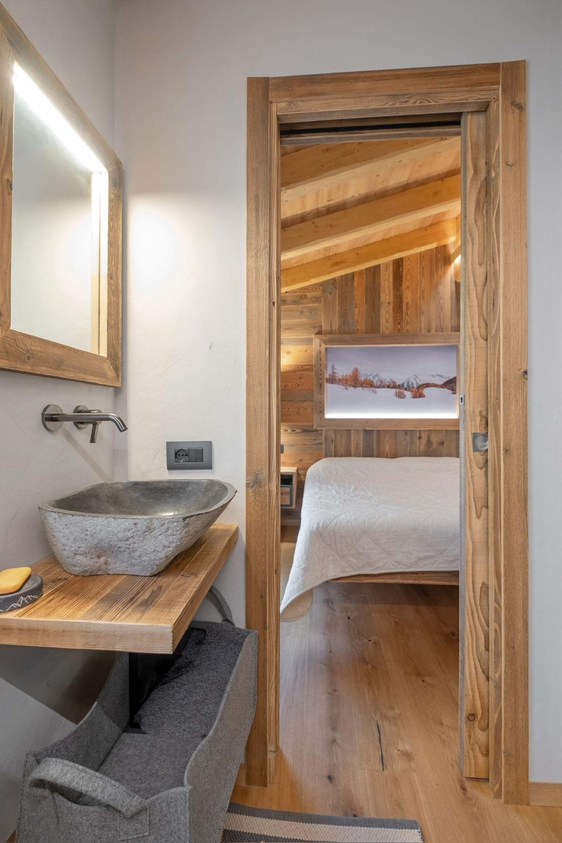Il legno, materiale vivo da cui tutto ha origine, ispira questo linguaggio: naturale, essenziale, radicato. Così ogni progetto prende nome da ciò che lo circonda, diventando parte di un racconto più ampio fatto di luoghi, materia e relazione con il territorio.